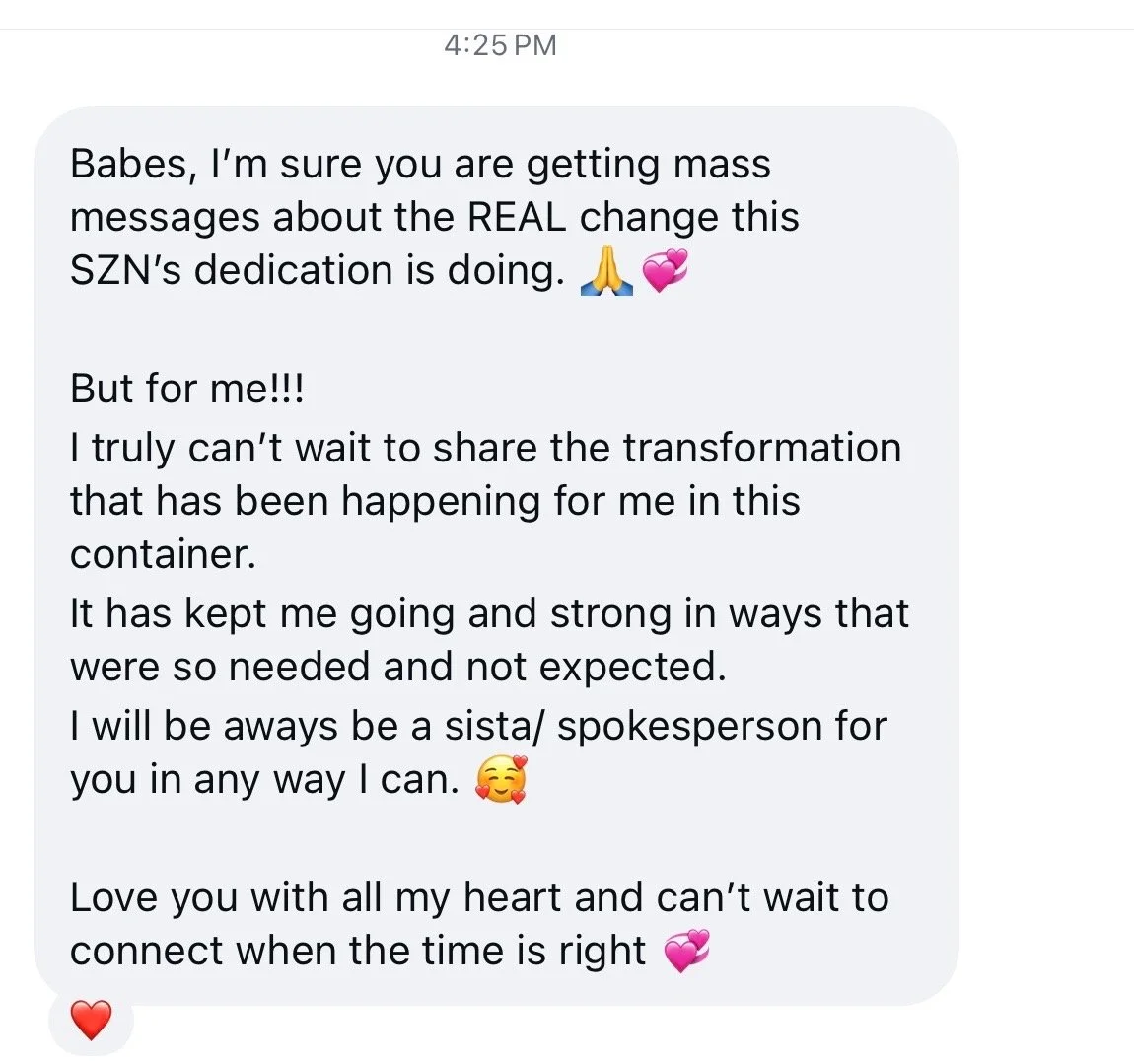 “I truly can't wait to share the transformation that has been happening for me in this container. It has kept me going and strong in ways that were so needed and not expected.”