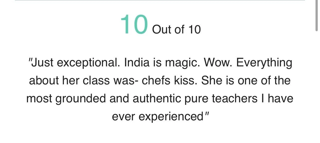 India is a creative, a channel, a leader, a mess, a mover, a feeler, a bridge between the modern with the mystical, offering women integrated, elevated movement medicine for mind/body/spirit.